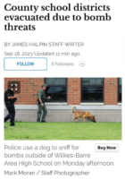 Constable Matthew Atwood, K9 Zhukov, and Constable Victor Vega joined other police in response to a bomb threat in Wilkes-Barre.
